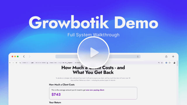 Growbotiks initiates a professional discovery session directly with your client. It gathers their goals, current efforts, and budget requirements. It’s smart enough to help anyone provide the information needed. It’s a white-labeled, high-touch experience that makes your agency look like it has a dedicated strategy team available 24/7.